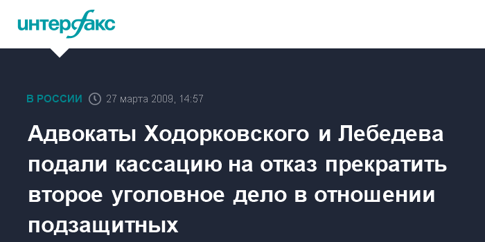 Адвокаты Ходорковского и Лебедева подали кассацию на отказ прекратить второе уголовное дело в отношении подзащитных