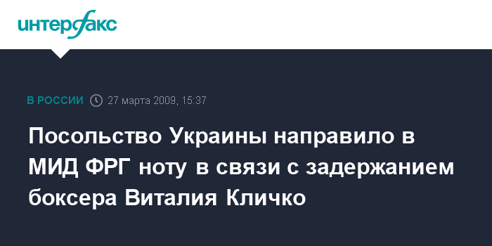 Посольство Украины направило в МИД ФРГ ноту в связи с задержанием боксера Виталия Кличко
