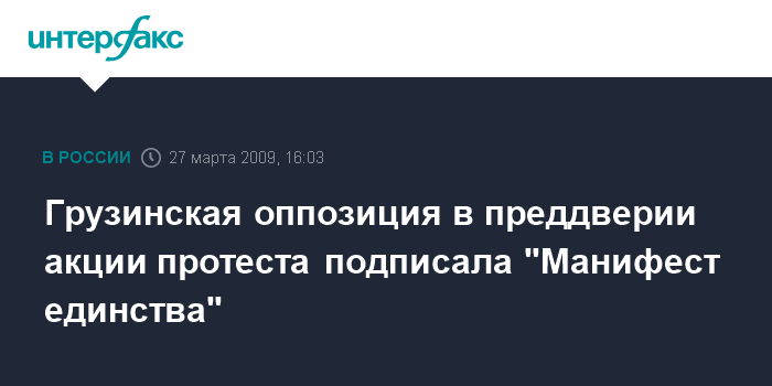 Оппозиционные партии согласовали пять пунктов "Манифеста единства": "Акции выражают волю большинства населения Грузии, акция будет мирной и будет проходить в рамках Конституции, будем действовать по воле народа, все планы акции будут координированы между партиями, предлагаем сотрудничество всем тем представителям нынешней власти, которые осознают пагубность ее действий". После презентации манифеста лидер "Альянса во имя Грузии" Ираклий Аласания подчеркнул, что "никакого оружия оппозиция применять не намерена".
