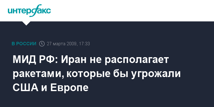 Москва. 27 марта. INTERFAX.RU - Иран сейчас не располагает технологиями, способными создать ракетные вооружения, угрожающие не только США, но и Европе, заявил замминистра иностранных дел РФ Сергей Рябков.