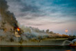 Взлетная палуба обрушилась на горящем третий день десантном корабле США