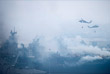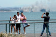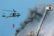 Помимо многочисленных катеров, поливающих корабль из пожарных стволов, задействовано три вертолета, сбрасывающих на него воду.