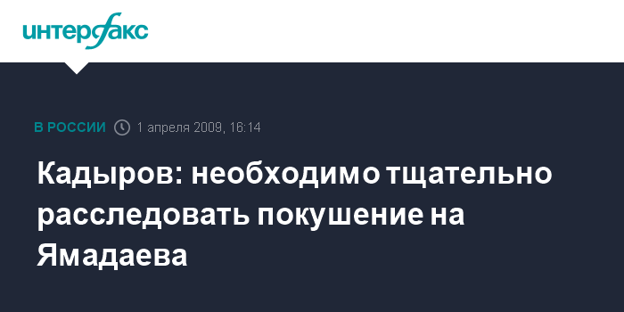 Кадыров: необходимо тщательно расследовать покушение на Ямадаева