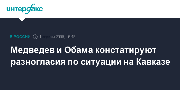 Лондон. 1 апреля. INTERFAX.RU - Россия и США существенно расходятся в оценке августовских событий 2008 года на Кавказе, но считают необходимым выполнения плана из шести пунктов и продолжении сотрудничества в рамках Женевских дискуссий, говорится в совместном заявлении президентов двух стран.