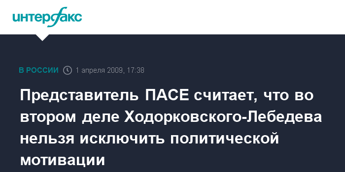 Представитель ПАСЕ считает, что во втором деле Ходорковского-Лебедева нельзя исключить политической мотивации