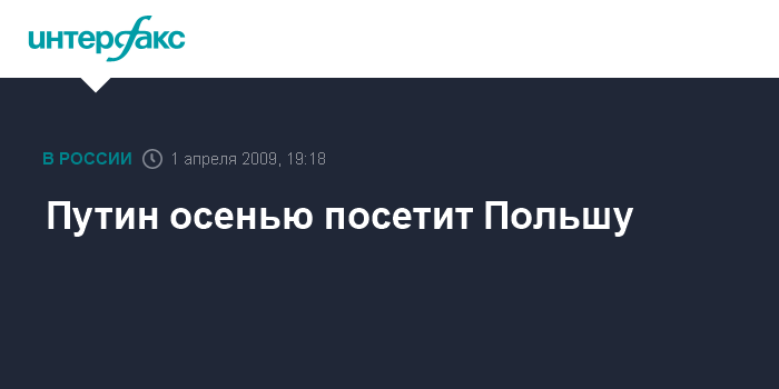 Москва. 1 апреля. INTERFAX.RU - Премьер-министр РФ Владимир Путин посетит Польшу осенью этого года.