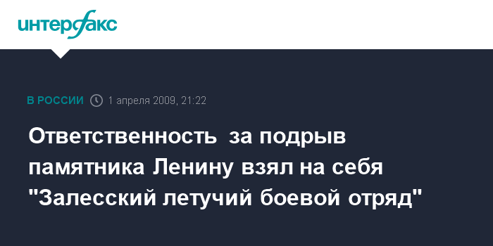 Ответственность за подрыв памятника Ленину взял на себя "Залесский летучий боевой отряд"
