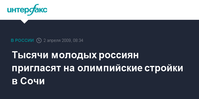 Москва. 2 апреля. INTERFAX.RU - Более пяти тысяч молодых людей будут приглашены к участию в подготовке Сочи к Олимпийским играм.