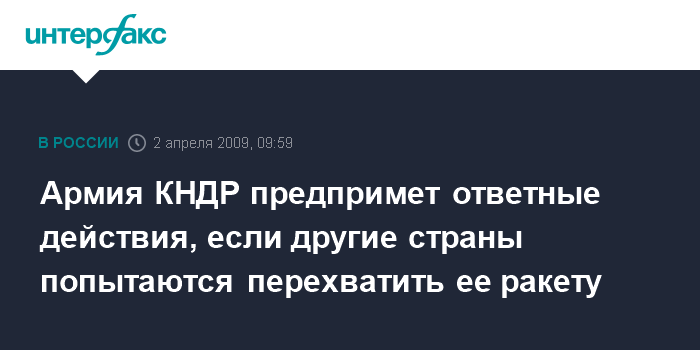 Москва. 2 апреля. INTERFAX.RU - Военные КНДР готовы предпринять решительные ответные действия, если будет предпринята попытка сбить ракету, которую они собираются запустить в начале апреля, говорится в сообщении, опубликованном в четверг северокорейским агентством ЦТАК.
