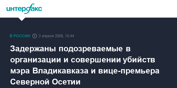 Задержаны подозреваемые в организации и совершении убийств мэра Владикавказа и вице-премьера Северной Осетии