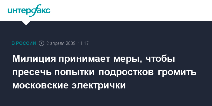 Милиция принимает меры, чтобы пресечь попытки подростков громить московские электрички