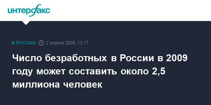 Число безработных в России в 2009 году может составить около 2,5 миллиона человек