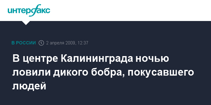 Москва. 2 апреля. INTERFAX.RU - В центр Калининграда минувшей ночью забрел дикий бобер. Как сообщили "Интерфаксу" в региональном УВД, вначале незваному гостю обрадовалась молодежь, праздновавшая на площади Победы завершение дня розыгрышей. Некоторые начали играть с животным, однако оно сильно укусило одну из девушек.