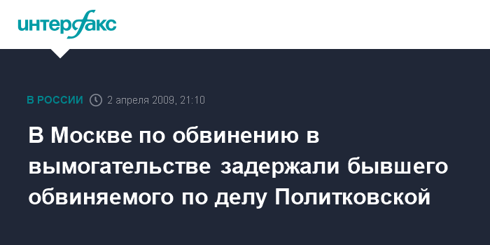 Москва. 2 апреля. INTERFAX.RU - Один из бывших обвиняемых по уголовному делу об убийстве обозревателя "Новой газеты" Анны Политковской задержан в Москве по подозрению в вымогательстве.