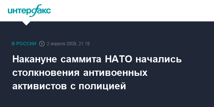 Страсбург. 2 апреля. INTERFAX.RU - Стычки настроенных против НАТО демонстрантов с полицией начались в Страсбурге в четверг накануне встречи на высшем уровне представителей стран-участниц Североатлантического альянса, сообщают местные СМИ.
