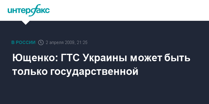 "ГТС Украины - это собственность Украины, это одна из составных частей нашей независимости. В Украине есть закон, за который проголосовало конституционное число депутатов, который говорит четкий ясный ответ - ГТС Украины в сегодняшнем измерении может быть только государственной, она не передается ни в управление, ни в использование", - заявил Ющенко в интервью радиостанции "Эхо Москвы".