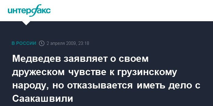 Медведев заявляет о своем дружеском чувстве к грузинскому народу, но отказывается иметь дело с Саакашвили