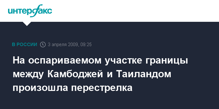 Москва. 3 апреля. INTERFAX.RU - Перестрелка между таиландскими и камбоджийскими солдатами произошла в пятницу на оспариваемом участке границы, на котором расположен почитаемый в обеих странах храм Преах Вихеар, передает со ссылкой на камбоджийских официальных лиц британская телерадиокорпорация Би-би-си.