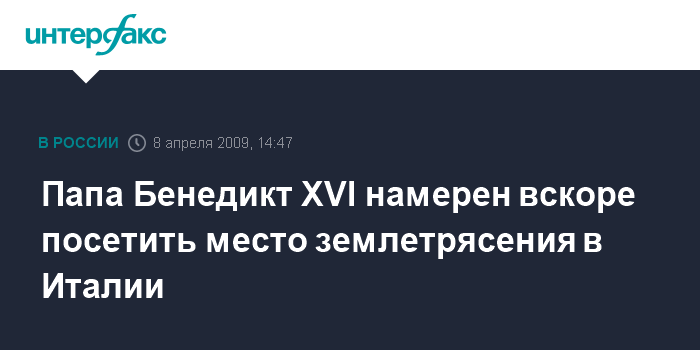 Папа Бенедикт XVI намерен вскоре посетить место землетрясения в Италии