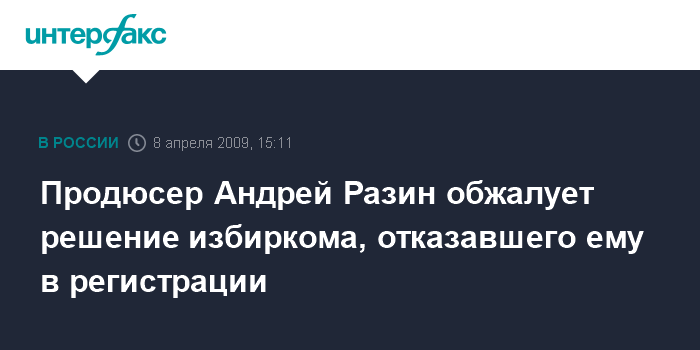 Продюсер Андрей Разин обжалует решение избиркома, отказавшего ему в регистрации