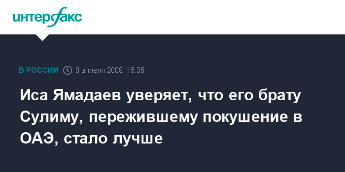 По версии правоохранительных органов, Сулим Ямадаев был убит в результате покушения в Дубае, однако его близкие настаивают на том, что он был сильно ранен, но остался жив. Иса Ямадаев сказал, что рассматривает вопрос о подаче заявления в правоохранительные органы РФ в связи с инцидентом с его братом в Дубае.