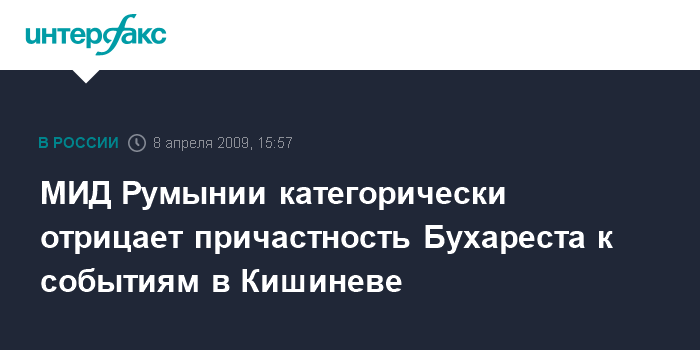 Москва. 8 апреля. INTERFAX.RU - Румыния категорически отрицает обвинения молдавских властей, касающиеся возможного вмешательства Бухареста во внутренние дела Молдавии. Соответствующее заявление распространено в среду министерством иностранных дел Румынии.