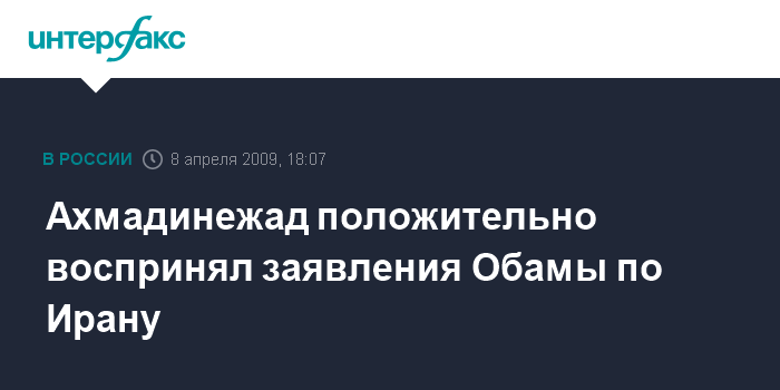 Тегеран. 8 апреля. INTERFAX.RU - Президент Ирана Махмуд Ахмадинежад заявил в среду, что положительно оценивает недавние высказывания американского президента Барака Обамы по случаю персидского нового года.