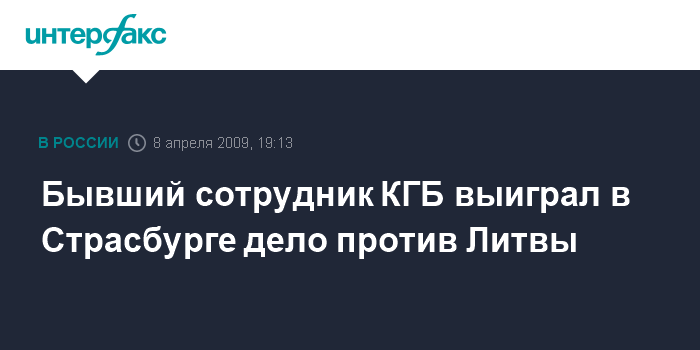Вильнюс. 8 апреля. INTERFAX.RU - Рассмотрев дело бывшего тайного сотрудника КГБ, Европейский суд по правам человека в Страсбурге вынес благоприятное для него решение.