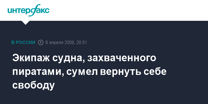 Экипаж, состоящий из граждан США, вернул себе контроль над судном. По предварительным данным, один пират захвачен в плен. Неясно, что произошло с остальными разбойниками: в Пентагоне лишь отметили, что они оказались "в воде".