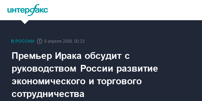 Москва. 9 апреля. ИНТЕРФАКС - Премьер-министр Ирака Нури Аль-Малики 9-10 апреля посетит Россию с официальным визитом по приглашению председателя правительства РФ Владимира Путина.