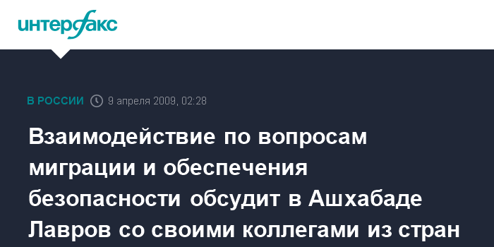 Взаимодействие по вопросам миграции и обеспечения безопасности обсудит в Ашхабаде Лавров со своими коллегами из стран СНГ