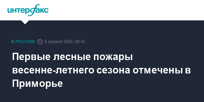 Владивосток. 9 апреля. ИНТЕРФАКС - ДАЛЬНИЙ ВОСТОК - В лесах Приморья начался пожароопасный период, отмечены первые возгорания.