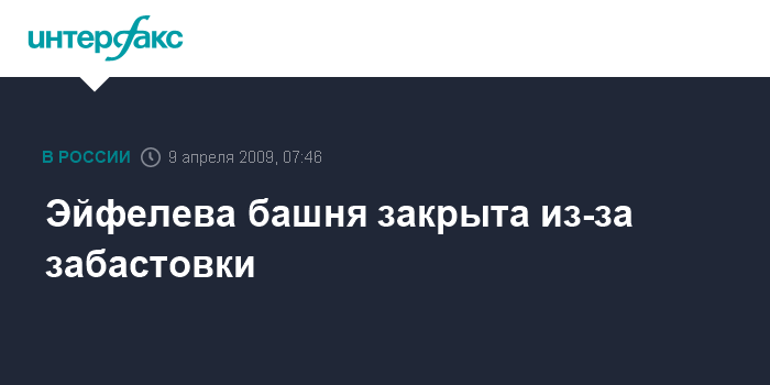 Париж. 9 апреля. INTERFAX.RU - Наиболее известная достопримечательность Парижа, Эйфелева башня, закрыта для посетителей из-за забастовки ее работников.