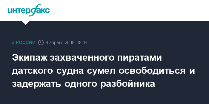 Москва. 9 апреля. INTERFAX.RU - Экипаж датского судна "Маерск Алабама", захваченного в среду сомалийскими пиратами, смог прогнать морских разбойников, сообщила британская телерадиокорпорация Би-Би-Си, со ссылкой на источники в Пентагоне.