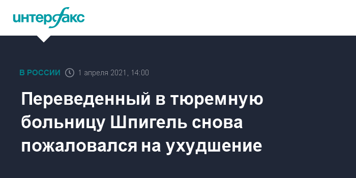 Переведенный в тюремную больницу Шпигель снова пожаловался на ухудшение