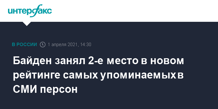 Байден занял 2-е место в новом рейтинге самых упоминаемых в СМИ персон