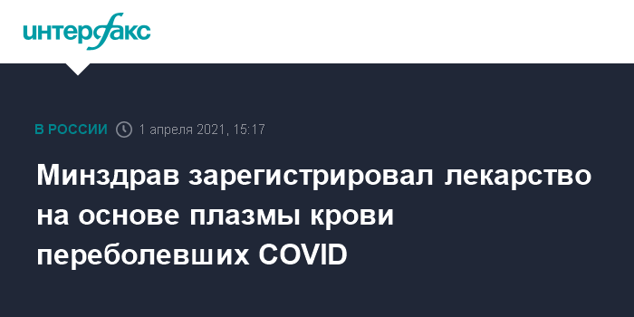В релизе также приводятся слова министра здравоохранения РФ: "Вслед за первой в мире вакциной "Спутник V", рядом противовирусных средств, лекарств на основе моноклональных антител, купирующих цитокиновый шторм, мы первыми зарегистрировали препарат на основе иммуноглобулинов, который поможет тяжелым пациентам, получающим лечение в условиях стационара".