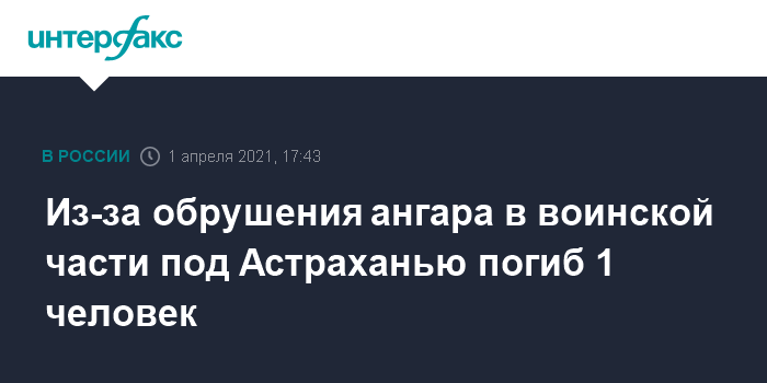 Из-за обрушения ангара в воинской части под Астраханью погиб 1 человек