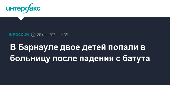 Москва. 30 мая. INTERFAX.RU - Следователи в Алтайском крае будут выяснять обстоятельства травмирования двух детей на батуте, сообщает Следственное управление СКР по региону.