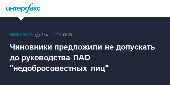 Москва. 31 мая. INTERFAX.RU - Минэкономразвития предлагает не допускать в члены советов директоров, правлений, на посты директоров публичных обществ (ПАО) "недобросовестных лиц", к которым планируется отнести привлеченных к субсидиарной ответственности либо выплачивающих убытки в пользу какой-либо компании по решению суда, если прошло менее трех лет с момента его вступления в силу.