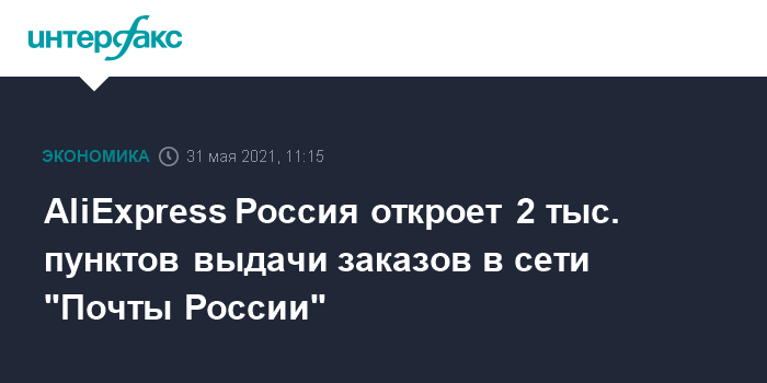 Москва. 31 мая. INTERFAX.RU - AliExpress Россия начал открывать пункты выдачи заказов (ПВЗ) под собственным брендом в отделениях "Почты России", говорится в сообщении компании.