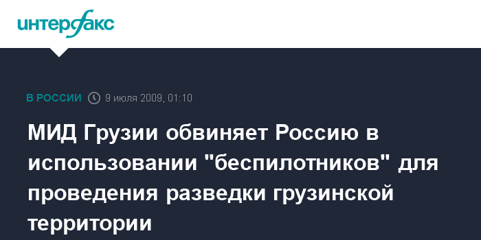 МИД Грузии также ссылается на информацию МВД Грузии и заявляет, что российская сторона в последний период активно использует беспилотные летательные аппараты для проведения разведывательной деятельности над территорией Грузии.