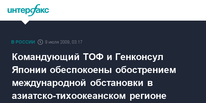 Командующий ТОФ и Генконсул Японии обеспокоены обострением международной обстановки в азиатско-тихоокеанском регионе