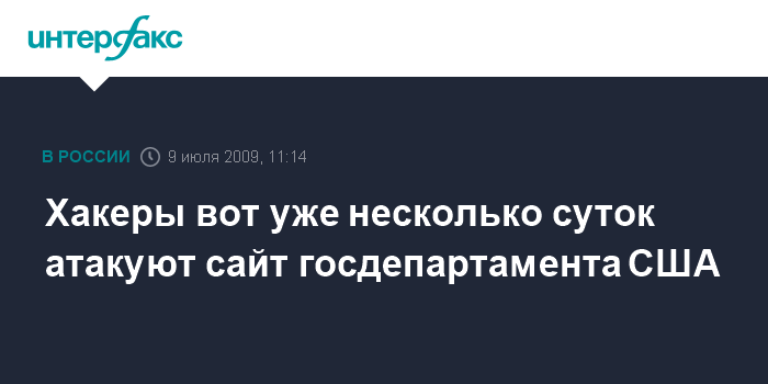 Москва. 9 июля. INTERFAX.RU - Хакеры продолжают нападать на веб-сайты различных государственных служб США, включая государственный департамент, заявил представитель госдепа Иэн Келли. "Атака на наш вэб-сайт www.state.gov началась 5 июля. Она все еще продолжается, однако сейчас ее масштабы уменьшились", - сказал он, добавив, что, тем не менее, не испытывает "больших трудностей" при входе на сайт.