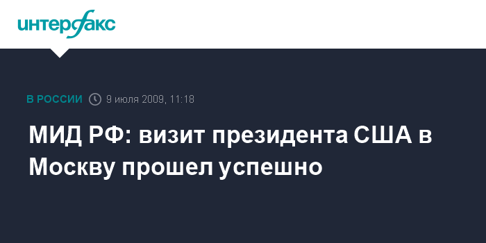 Москва. 9 июля. INTERFAX.RU - В Москве оценивают состоявшийся визит в Москву президента США Барака Обамы как успешный и прорывной, заявил официальный представитель МИД РФ Андрей Нестеренко.