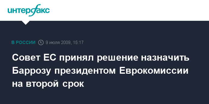 Москва. 9 июля. INTERFAX.RU – Совет Европейского союза предложил на должность президента Европейской комиссии на период 2009-2014 года ныне действующего президента Жозе Мануэля Баррозу.