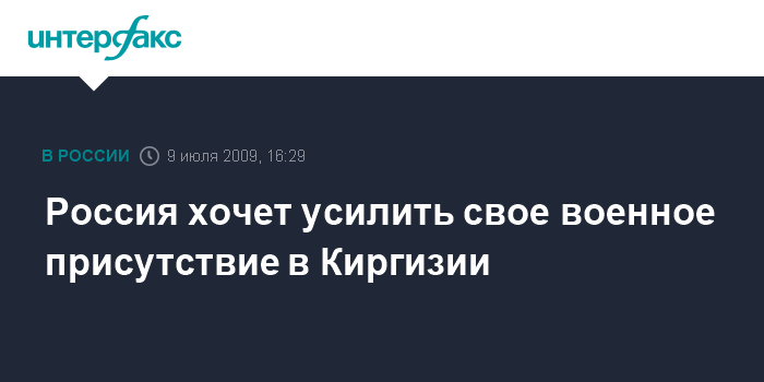 Москва. 9 июля. INTERFAX.RU - Россия обратилась к руководству Киргизии с просьбой о расширении своего военного присутствия в республике, сообщил "Интерфаксу" в четверг дипломатический источник в Бишкеке. По его словам, данный вопрос поднимался в ходе переговоров, которые состоялись в Бишкеке 7 июля с правительственной делегацией России.