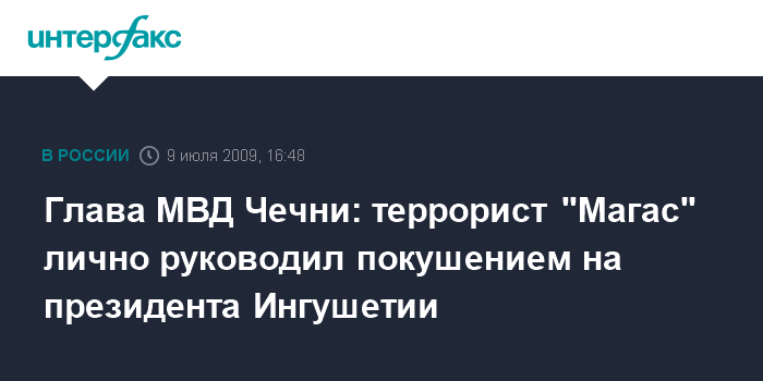 Глава МВД Чечни: террорист "Магас" лично руководил покушением на президента Ингушетии