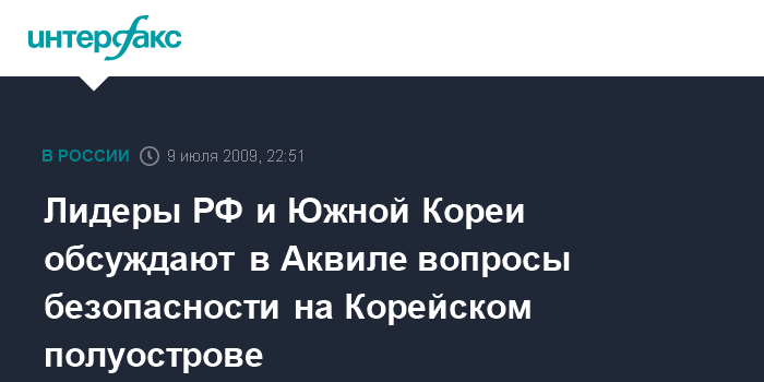 Лидеры РФ и Южной Кореи обсуждают в Аквиле вопросы безопасности на Корейском полуострове