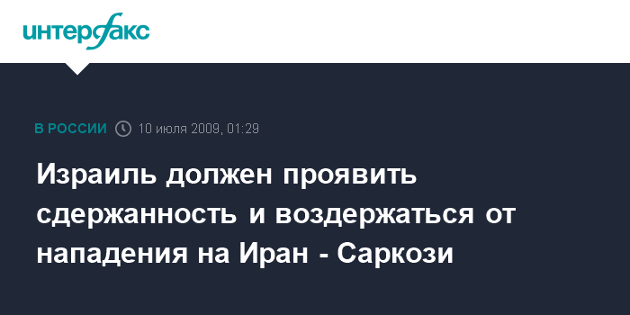 Израиль должен проявить сдержанность и воздержаться от нападения на Иран - Саркози